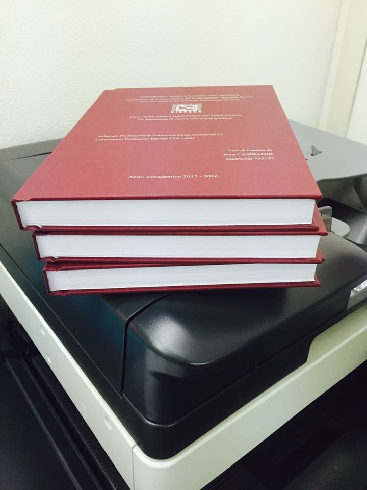 Eseguiamo anche la stampa e la rilegatura di tesi di laurea in 2 ore.
